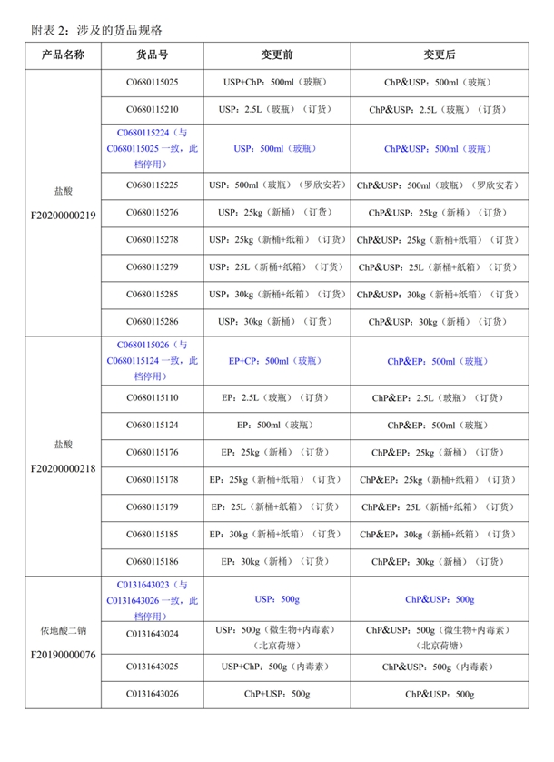 11月1日起,南試鹽酸(USP)/(EP)、依地酸二鈉(USP)質(zhì)量標(biāo)準(zhǔn)變更,鹽酸(USP)/(EP)有效期變更,變更告知函如下!