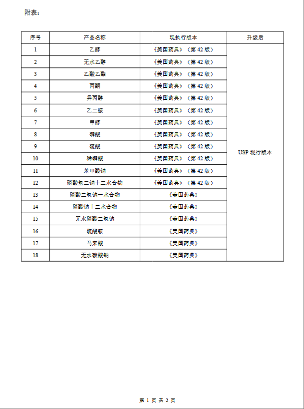 變更涉及產(chǎn)品清單如附表中所示,變更后均執(zhí)行 USP 現(xiàn)行版本,除“異丙醇”有指標(biāo)的增加,其他均為通則修訂引起的編輯性修訂;此次變更涉及產(chǎn)品質(zhì)量標(biāo)準(zhǔn)、產(chǎn)品標(biāo)簽、COA,不涉及產(chǎn)品生產(chǎn)工藝、生產(chǎn)設(shè)備等的變更。